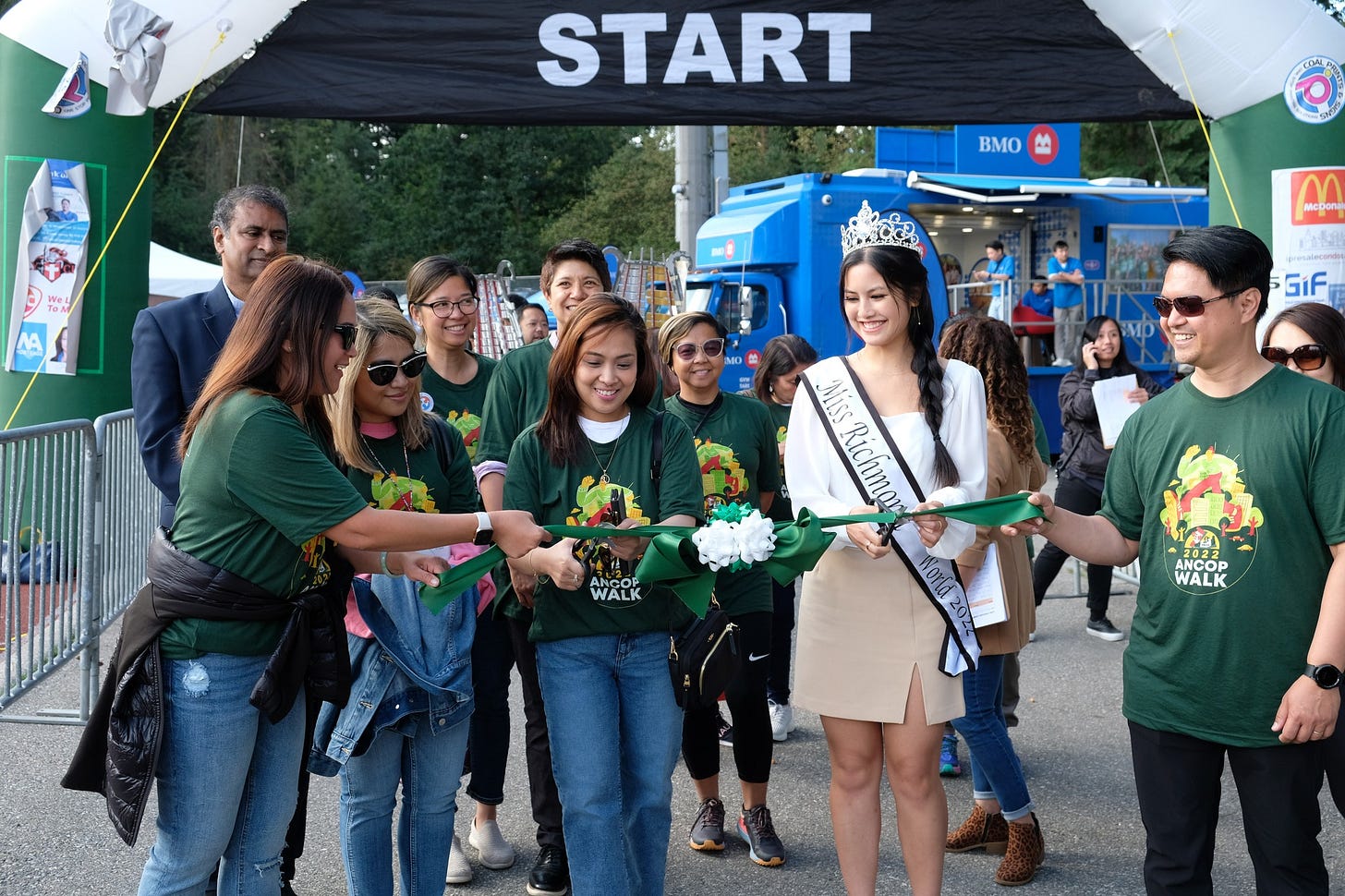 Vancouver Consul Analyn Ratonel cuts the ribbon for the start of the Ancop Walk(a descendant of the GK Walk) in Burnaby BC. Assisting her is Ms Canada candidate Christine Banzon. This walk and other simultaneous Ancop walks all over Canada hope to raise funds to finance Ancop projects in the Philippines.